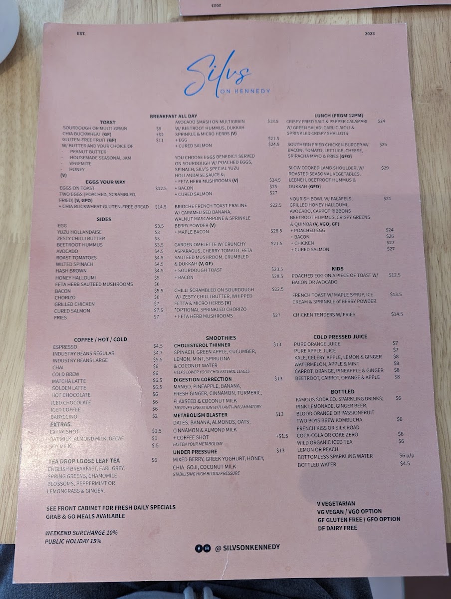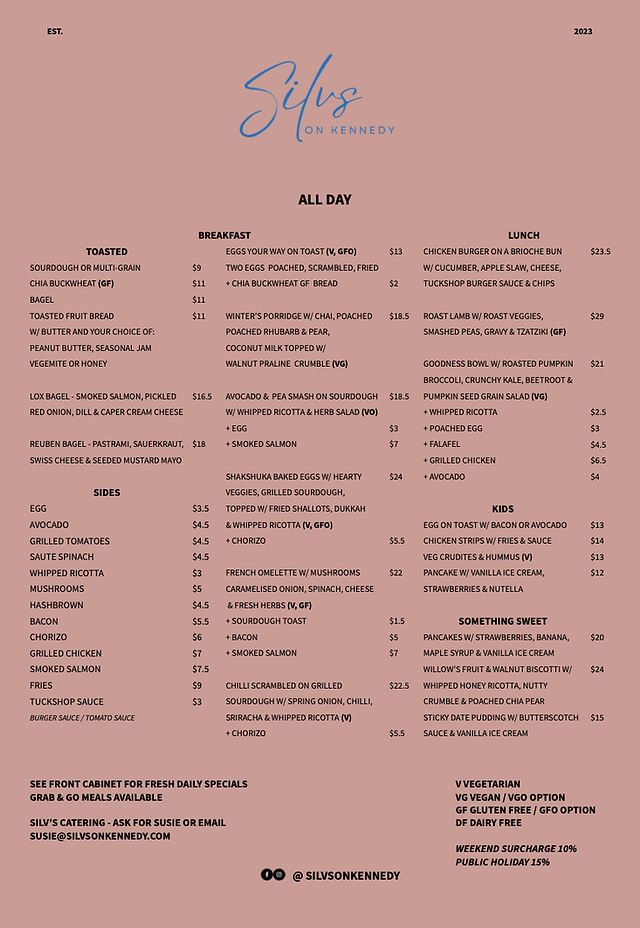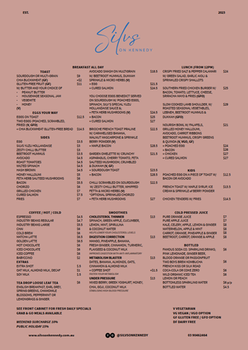 Silvs on Kennedy Menu